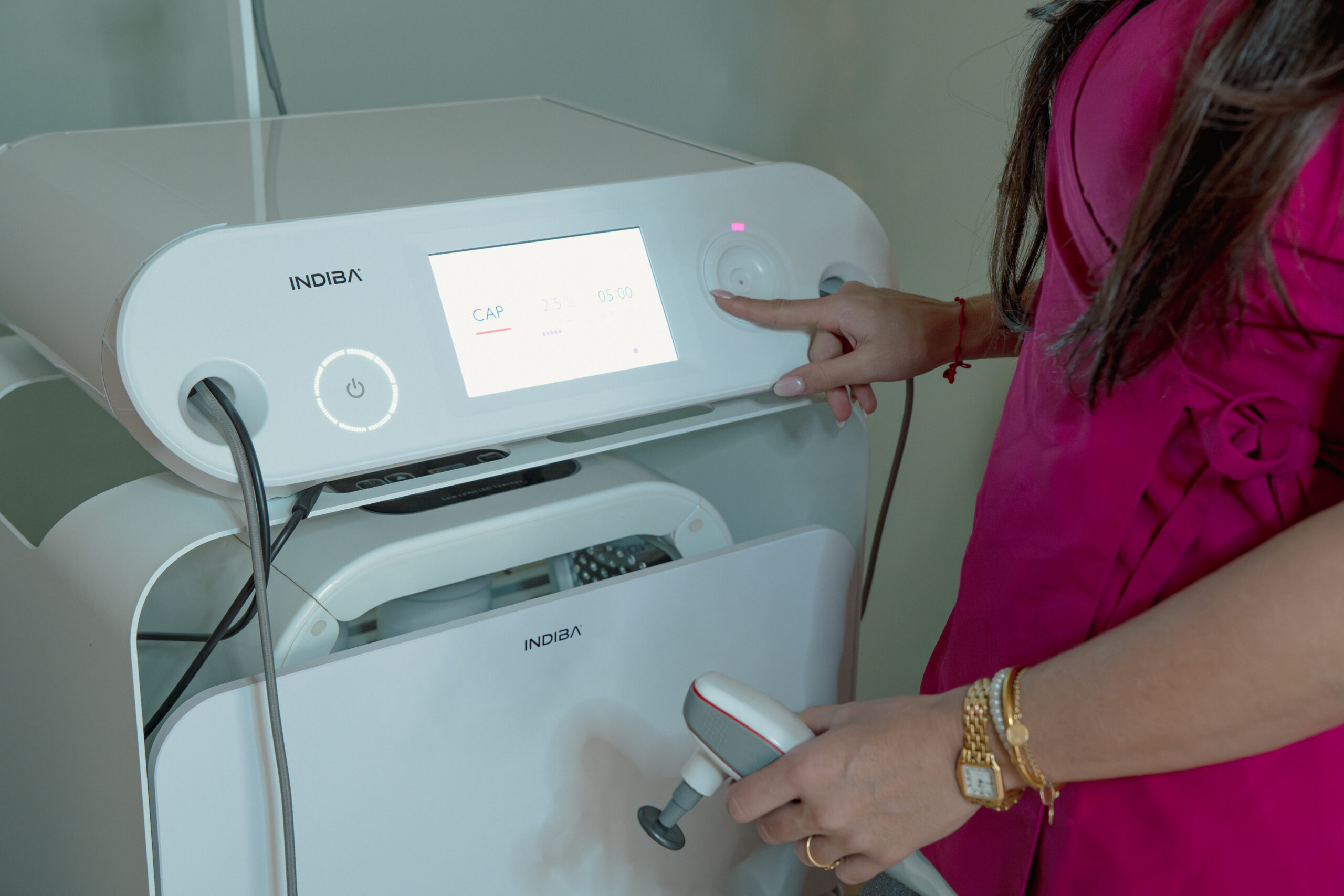 Indiba Glow utiliza radiofrecuencia capacitiva y resistiva para estimular los tejidos en el interior, favoreciendo la regeneración celular.